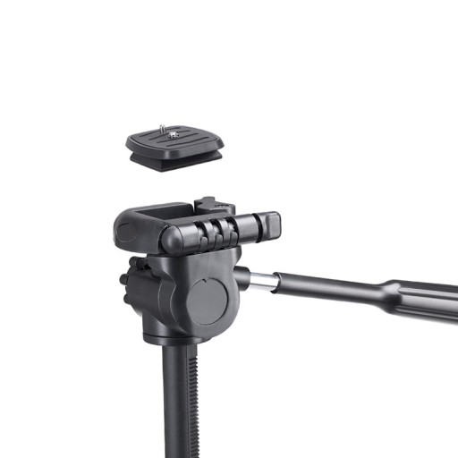 - Szybkozłączka - element, do którego przykręca się aparat/kamerę - jednym ruchem zacisku można go odłączyć od statywu, wygodnie zamocować urządzenie, następnie jednym ruchem ręki zablokować w statywie.