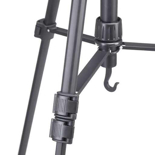 - Zamontowany na stałe hak - pozwala na zawieszenie dodatkowego balastu i zwiększenie stabilności statywu (ważne przy montowaniu ciężkich aparatów czy kamer video)