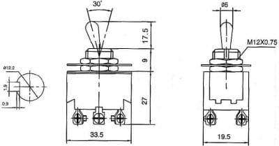 Przełącznik dźwigniowy TS-603; 6-pin, 3-poz.; ON-OFF-ON;