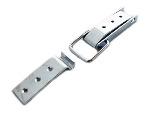 Produkt wykonany bardzo solidnie z wysokiej jakości materiału, gruba blacha. Zabezpieczony przed korozją oraz warunkami atmosferycznymi ocynkiem. Stosowany przy burtach samochodów dostawczych, przyczep, przy skrzyniach, meblach itp.