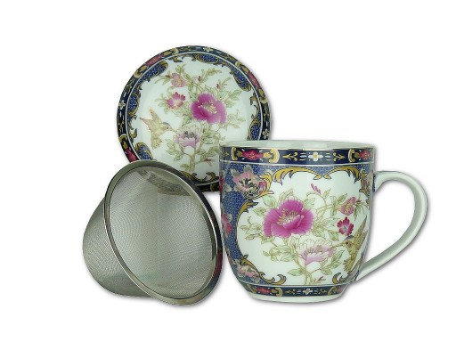 Seraficzny kubek z zaparzaczem zdobiony motywem kwiatowym. Ciepła i stonowana kolorystyka nadaje linii elegancji oraz szyku. Dzięki wykonaniu z najwyższej jakości porcelany rewelacyjnie wygląda na stole. Całość zapakowana w ozdobne pudełko, co stanowi niezwykle praktyczny, ładny i sprawdzony pomysł na upominek dla każdej kobiety.