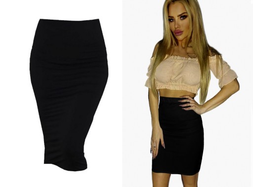 Черная миди -юбка для карандашной трубки на эластичной ленте перед коленом S/M
