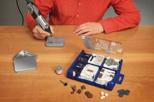 Walizka z tworzywa sztucznego znajdująca się w zestawie zapewnia wygodne przechowywanie akcesoriów firmy DREMEL, a specjalne wkłady pozwalają w łatwy sposób segregować i porządkować akcesoria.