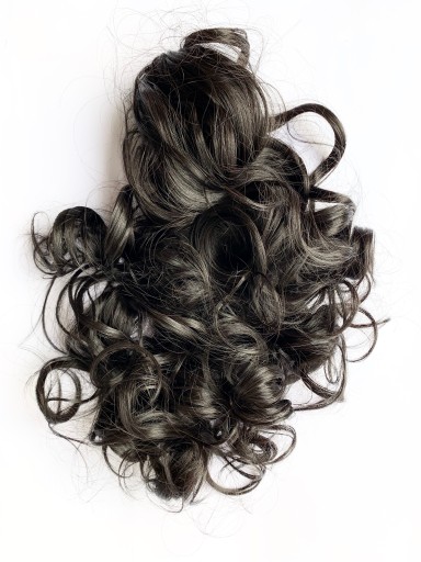 Наращивание глубоких черных волос, хвост с локонами и застежкой.