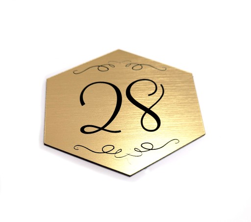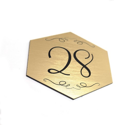 Tabliczka na drzwi pokoju, gabinetu, hotelu 6,5 x 6 cm w kolorze złoto szczotkowane.