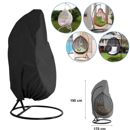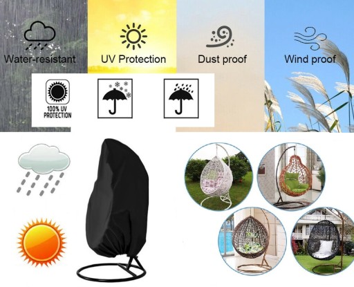 Pokrowiec jest duży, nakłada się go łatwo na fotel - gdyż jest otwierany od góry na zamek , dlatego po zasunięciu suwaka fotel jest w pełni chroniony przed dostaniem się wilgoci. Po założeniu pokrowca, można użyć ściągacza na dole , by dokładnie zabezpieczyć kosz przed podmuchami wiatru.