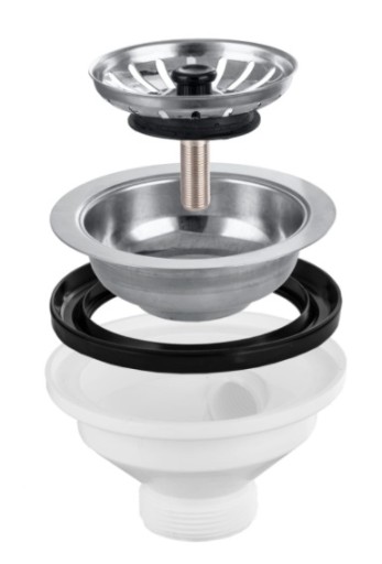 Korpus odpływu został wykonany z twardego tworzywa. Sitko + korek ze stali nierdzewnej.