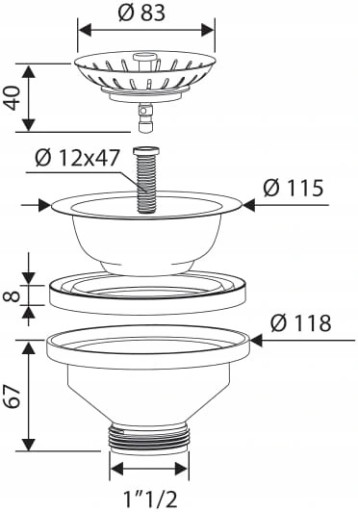 Oferujemy do sprzedaży korek zatyczkowy do zlewozmywaków stalowy bez przelewu.