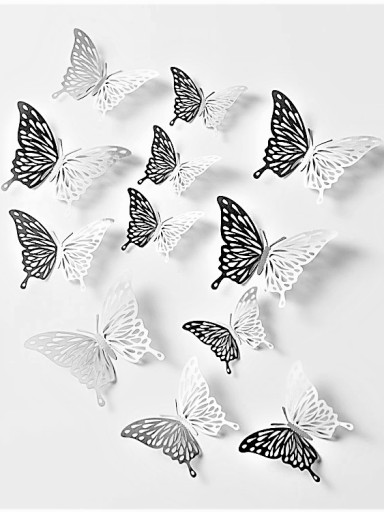 Piękne motyle w kolorze srebrnym - 12 sztuk w komplecie.
