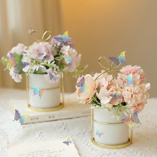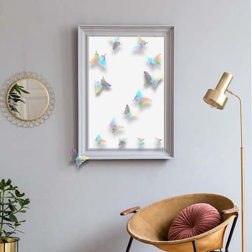 Naklejki Ścienne Motyle Motylki Srebrne Hologramowe 3D na Ślub Przyjęcia