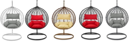 Produkt wykonany z najwyższej jakości materiału. Poduszki zapewnią relaks i miękkość siedziska w koszu - huśtawce.