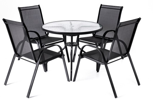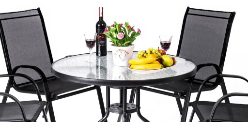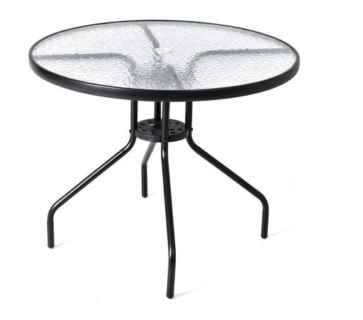 STÓŁ STOLIK OGRODOWY idealny do Twojego ogrodu. Stelaż został podwójnie lakierowany proszkowo, co idealnie przystosowuje ten produkt to zastosowania wewnątrz jak i na zewnątrz. Użyte materiały nie wymagają częstej konserwacji, są odporne na warunki pogodowe i nie wymagają specjalnych środków do pielęgnacji. Nóżki są dodatkowo zaopatrzone w nakładki z tworzywa sztucznego.Stół posiada blat z białej hartowanej szyby o gr. 5 mm, z otworem na wstawienie parasola ogrodowego.