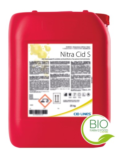 Nitra Cid S ma właściwości okamieniające, umożliwiające rozkład białka i żelaza, pieniące i zwilżające. Jest odpowiedni do okresowego odkamieniania powierzchni pokrytych silnymi osadami mineralnymi.