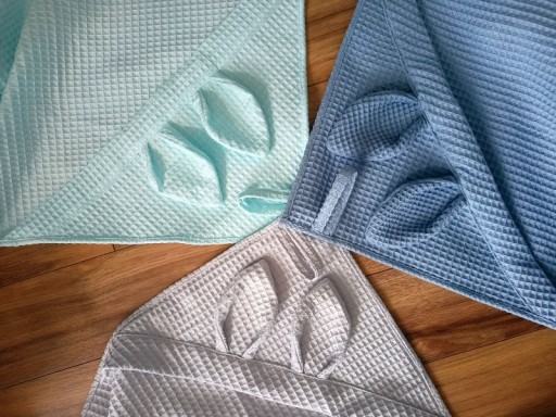 Ręcznik kąpielowy szyty jest ręcznie z bardzo miękkiej i delikatnej bawełny 100% - bawełna waflowa. Jest bardzo lekki i przyjemny w dotyku.