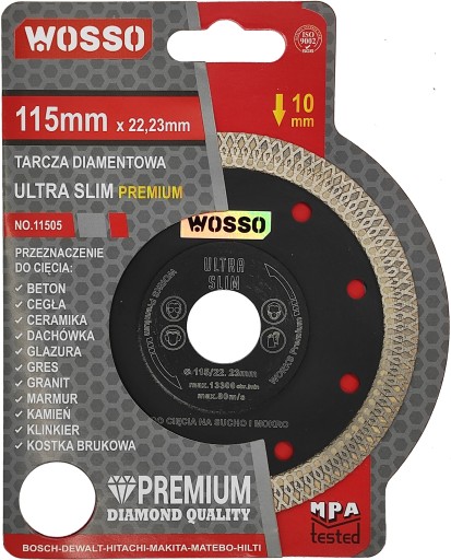 Tarcza ULTRA SLIM Premium WOSSO pokryta jest diamentem jakości PREMIUM PRO do obróbki przemysłowej.