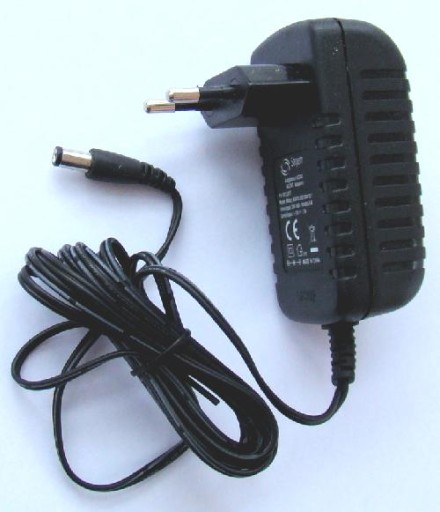 W komplecie jest zasilacz stabilizowany 12V 1A: