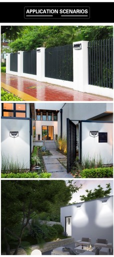 - Zasilanie energią słoneczną: panel słoneczny znajduje się w górnej części lampy. Automatycznie gromadzi energię w ciągu dnia. Proszę zainstalować produkt w bezpośrednim świetle słonecznym. Ta słoneczna lampa zewnętrzna jest bezprzewodowa. Możliwość montażu na ścianie.