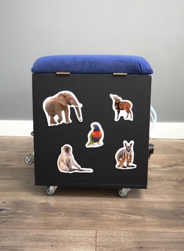 Skrzynia została wyposażona w skrętne kółka gumowe. Dwa z nich mają hamulce, które umożliwiają unieruchomienie skrzyni w dowolnym miejscu. Skrzynia posiada również podnośnik pneumatyczny ułatwiający otwieranie oraz zapobiegający przed opadnięciem siedziska. Wszystko dla bezpieczeństwa dziecka.