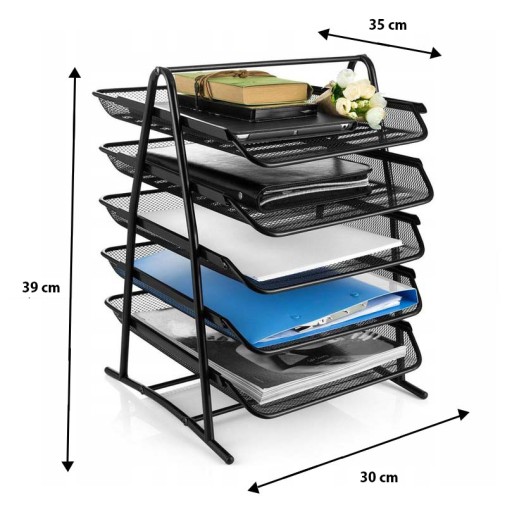 Элегантный настольный органайзер с 5 металлическими ящиками, черный, сетка