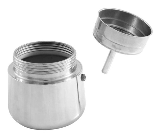 Sitko z kawą włożyć do zbiornika i mocno skręcić obydwie części kawiarki utrzymując kawiarkę w pionie