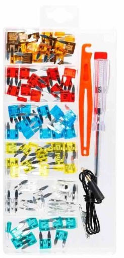 - Bezpieczniki płytkowe MINI w zestawie z uniwersalnym próbnikiem próbnikiem stosowanym do wykrywania napięcia w zakresie 6-24V. Do zestawu dołączony specjalny chwytak.