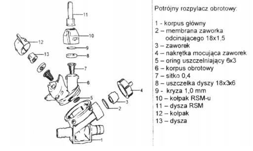 ТРОЙНАЯ РАСПЫЛИТЕЛЬНАЯ ГОЛОВКА С ФОРСУНКАМИ RSM!