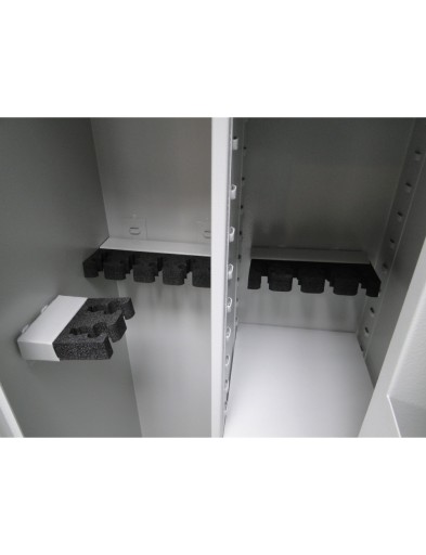 Demontowalna i przestawna listwa z 5 uchwytami piankowymi na broń montowana na tylnej ścianie w trzech położeniach (780mm- 830mm-880 mm licząc od dna szafy).