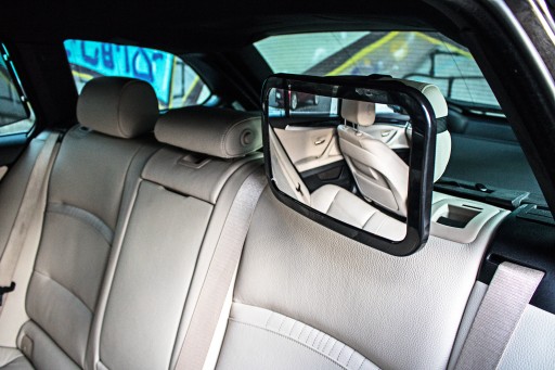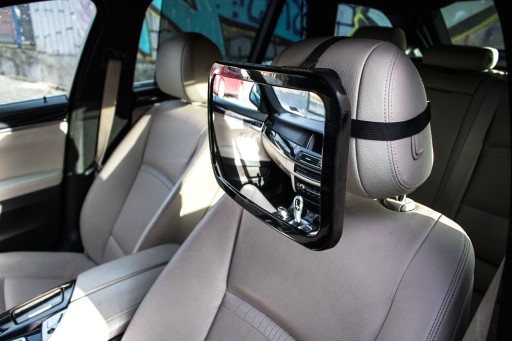 Posiada 4 paski mocowane w pionie oraz poziomie, które stabilnie trzymają się zagłówka i nie będą się luzować; nie ma możliwości, że lusterko się zsunie i spadnie na dziecko! Paski mocowane są za pomocą klamerek, dodatkowo posiadają możliwość regulacji, dzięki czemu dopasują się do każdego modelu zagłówka, niezależnie od marki oraz wielkości samochodu.