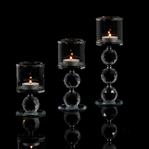 Przedstawiamy Państwu elegancki, szklany świecznik w stylu glamour wykonany z dbałością o każdy szczegół. Świecznik ten na stopce posiada dekoracje w postaci szklanych kul.