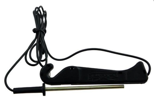 - pomiar napięcia w ogrodzeniu jest b. prosty - jedną część przykładamy do drutu, plecionki czy taśmy a drugą końcówkę (metalową) wtykamy w ziemię