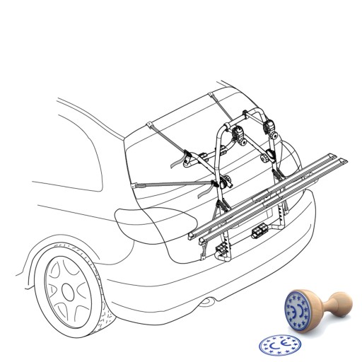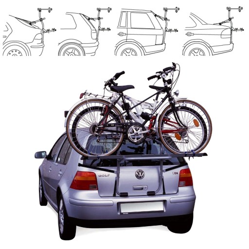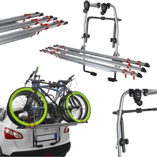 Wysokiej jakości uchwyt rowerowy włoskiego producenta Menabo, montowany na klapę samochodu.