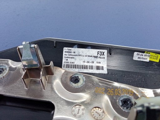 Opis: komplet dekorów deski rozdzielczej, tunelu środkowego i boczków drzwi, wzór S4MNA Alu Carbon CFK, mocowania całe, widoczne niewielkie ślady użytkowania, -jakość B && BMW 3 F30 F31 LCI DEKORY WNĘTRZA ALU CARBON KPL