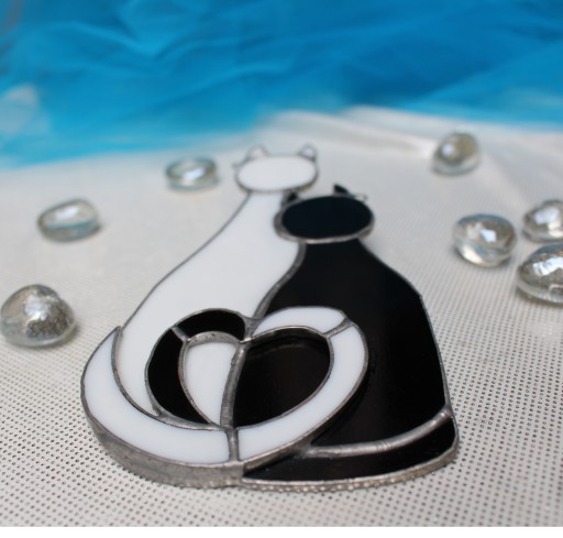 Две кошки, витражный декор, котята, Cat Love B-часть