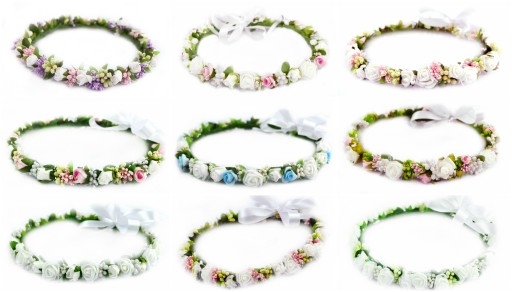 - Subtelny wianek wykonany ręcznie z delikatnych sztucznych kwiatków piankowych oraz dodatkow florystycznych dobrej jakosci