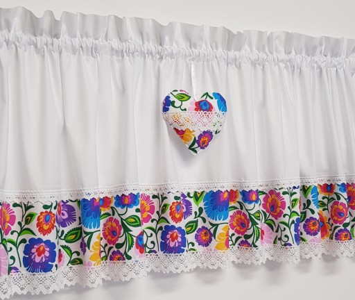 Biała bawełniana zazdrostka z dołem z kolorowej bawełny.Ozdobiona bawełnianą koronką i serduszkiem.