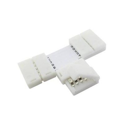 Złączka kątowa trójstronna typ "T" samozaciskowa dedykowana jest do taśm LED RGBW 12mm. Umożliwia połączenie wielokolorowej taśmy LED o szerokości 12 mm w narożnikach i kątach 90°.