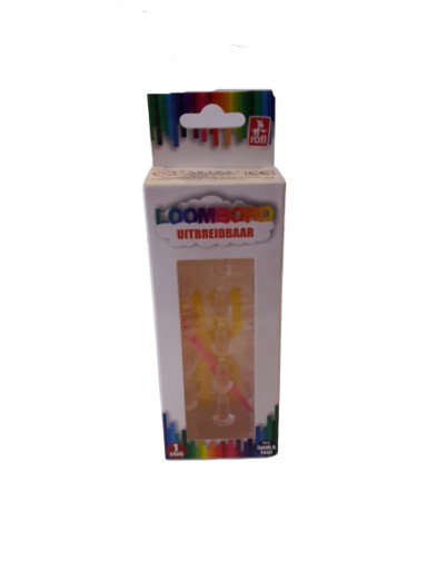 Plastikowe krosno służy do robienia bransoletek z małych kolorowych gumek.