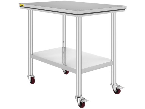 Ten stół przygotowawczy ze stali nierdzewnej jest zamontowany na 4 kółkach, dzięki czemu stół porusza się płynnie i jest stabilny. Dwa koła mają zintegrowany hamulec; Możesz go zablokować, aby utrzymać stół na miejscu.