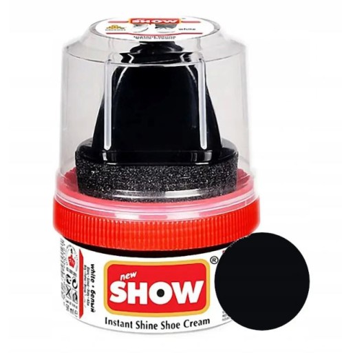 Czarna pasta do butów, woskowa, samo nabłyszczająca, Instant Shine Shoe Cream, Show, 50 ml z aplikatorem do nakładania.