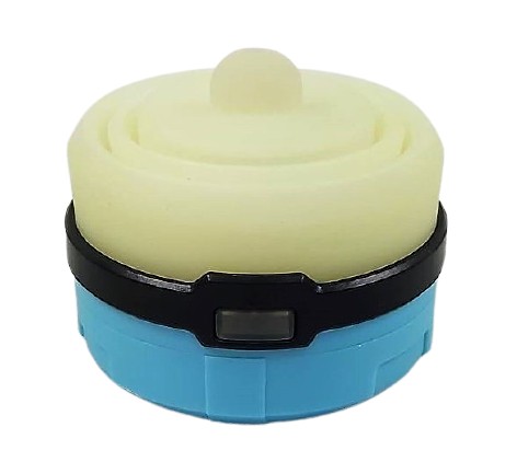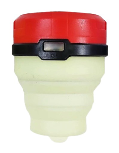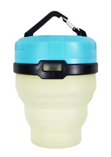 Rozkładana lampka do zawieszenia w namiocie, ogrodzie lub na balkonie. Wykonana z silikonu o właściwościach fluorescencyjnych oraz tworzywa sztucznego ABS. Pełni funkcję lampy stojącej, wiszącej i latarki w jednym.