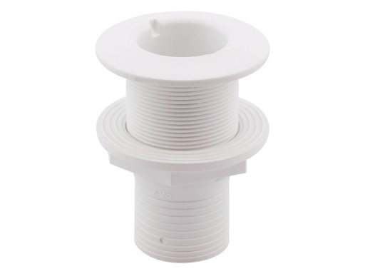 Odpływ biały wykonany z tworzywa sztucznego.