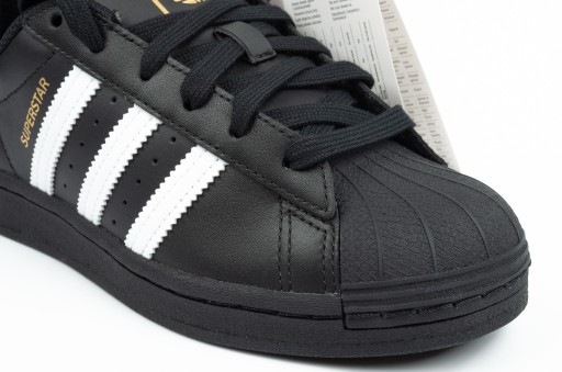 Buty sportowe Adidas Superstar to jeden z najbardziej rozpoznawalnych modeli Adidasa. Od swoich narodzin w latach 70' cieszy się niesłabnącym zainteresowaniem, które sprawia, że przy zachowanej pierwotnej formie wprowadzane są drobne poprawki, mające na celu zwiększyć komfort użytkowania. Cholewka w Superstarach została wykonana ze skóry licowej, z trzema paskami o zygzakowatych brzegach. Palce osłonięte są kultową muszlą, bez której nie moglibyśmy nazwać tego buta Superstarem. Podeszwa z grubej gumy, z charakterystycznym wzorem w jodełkę. Idealnie sprawdzą się w codziennym użytkowaniu.