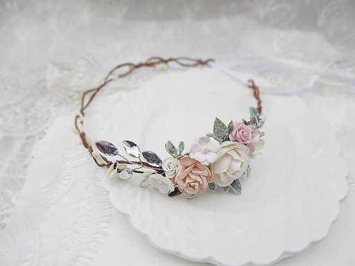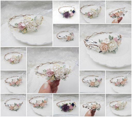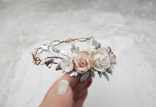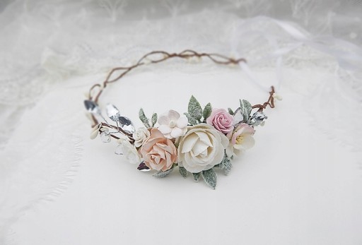 Regulowana szerokość wianka - zawiązywany jest z tyłu na satynową tasiemkę.