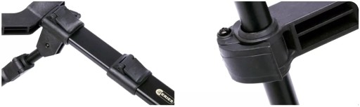 Precyzyjne umiejscowienie buzzer barów, sygnalizatorów i głowic pod dolnik wędzisk jest bardzo proste dzięki zastosowaniu punktów mocujących na kołnierzach. Można również wykorzystać elementy statywu do zrobienia tradycyjnej podpórki dla wędzisk poprzez przymocowanie nóg bezpośrednio do buzzer barów.