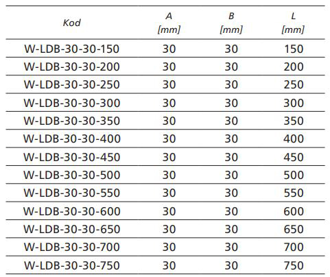 Wspornik ścienny perforowany typu T o symbolu W-LDB-30-30-500