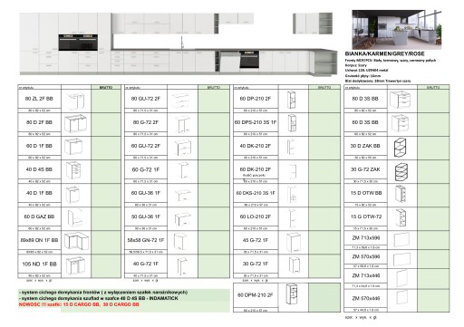 szafki dolne: 60 DK-210 2F, 40 DK-210 2F, 80 ZL 2F BB, 89/89 D NAR BB, 60 D GAZ BB( pod zab piekarnika), 40 D 4S BB