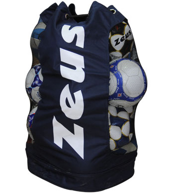 Torba na piłki Zeus wykonana z 70% NYLONU 30% POLIESTRU, z nadrukowanymi logo i zapięciem na sznurek, ma wymiary 78x45 cm.
