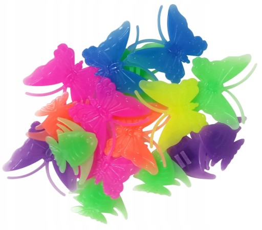 Opakowanie zawiera 16 sztuk kolorowych, neonowych nakładek w kształcie motylków i rybek.
