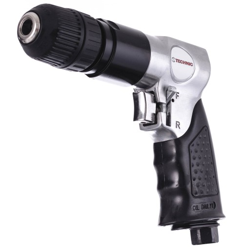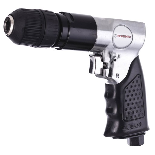 Profesjonalna wiertarka pneumatyczna firmy TECHNIC. Posiada samozaciskowy uchwyt wiertarski obsługujący wiertła o rozmiarach od 0,8 do 10mm.