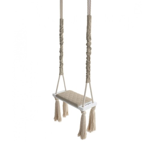 ✔️ Huśtawka BabySteps odznacza się nietuzinkowym wyglądem. Jedno jest pewne: miękka tapicerka z velvetu, grube liny i eleganckie chwosty zachwycą zarówno dzieci oraz ich opiekunów!